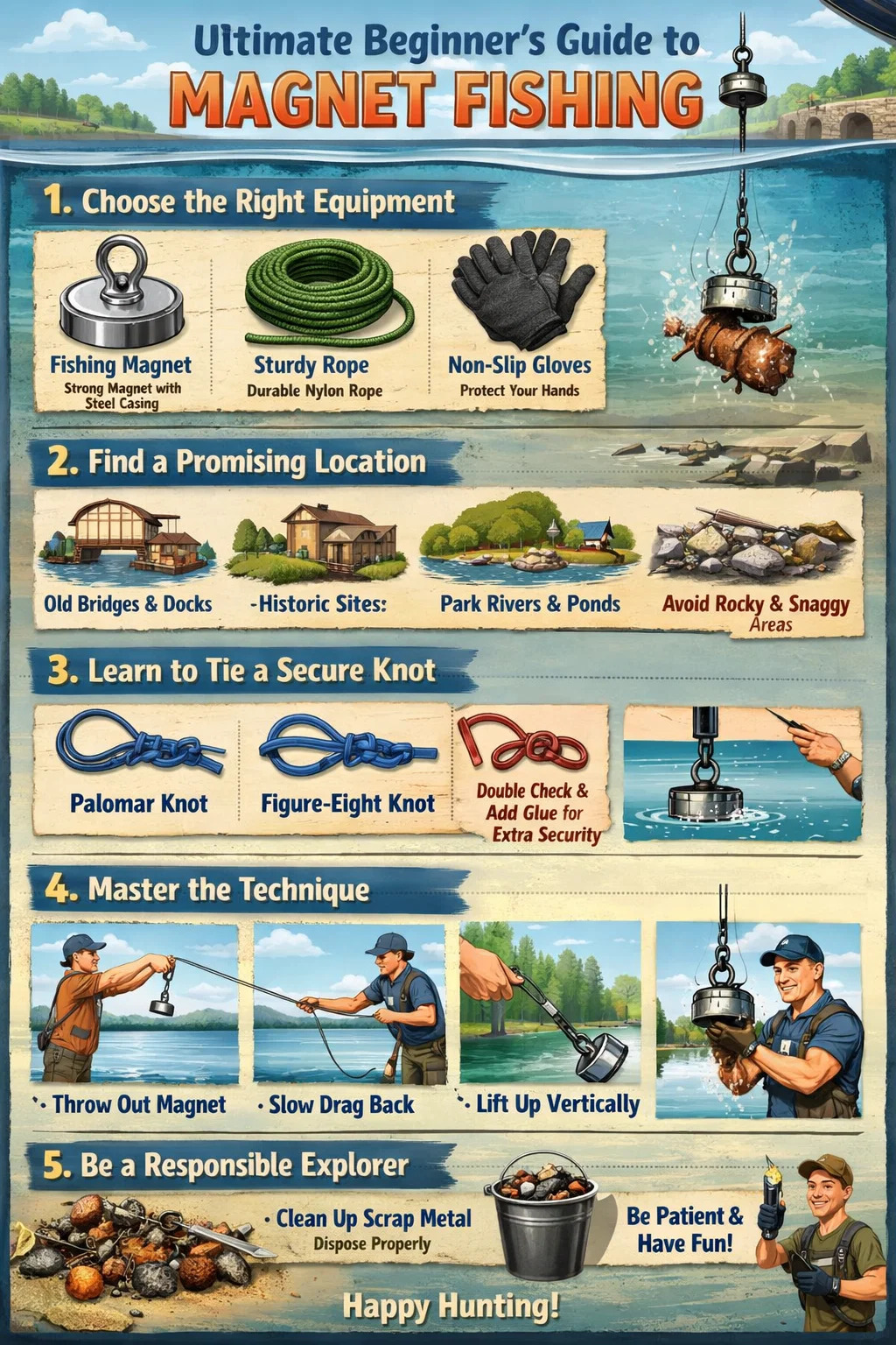 Попробовать магнитную ловлю на самом деле очень просто; вам не нужны никакие глубокие знания физики или исключительная сила. Если вам интересен подводный мир, вы можете легко начать, выполнив следующие шаги: