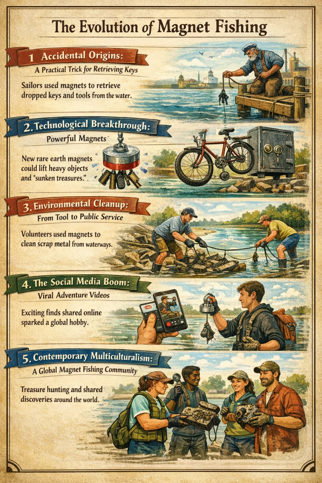 Глобальное сообщество: В настоящее время по всему миру существуют специализированные сообщества, где люди делятся своими советами по снаряжению и последними открытиями, превращая магнитную ловлю из нишевого инструмента в связь, соединяющую людей с природой и историей.